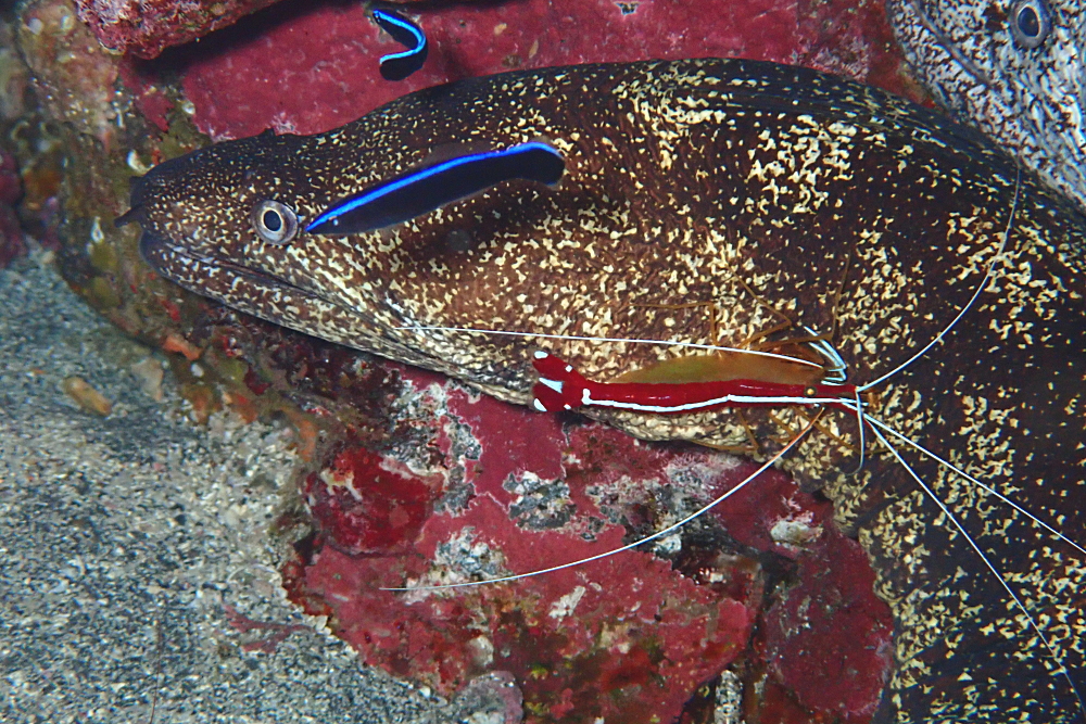 でも、こうしてウツボなどをクリーニングしている姿は、動画にも写真にも良い画になります。