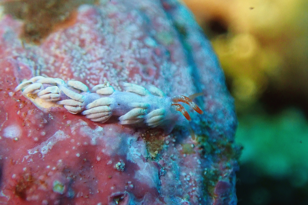 フタスジミノウミウシの体の赤?オレンジ?の2本ラインが綺麗!