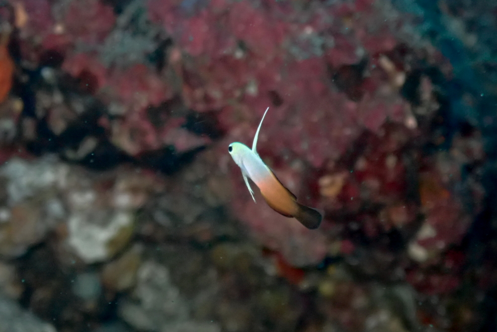 アカホシカクレエビ、アカオビハナダイ幼魚群れ、キンギョハナダイ群れ、