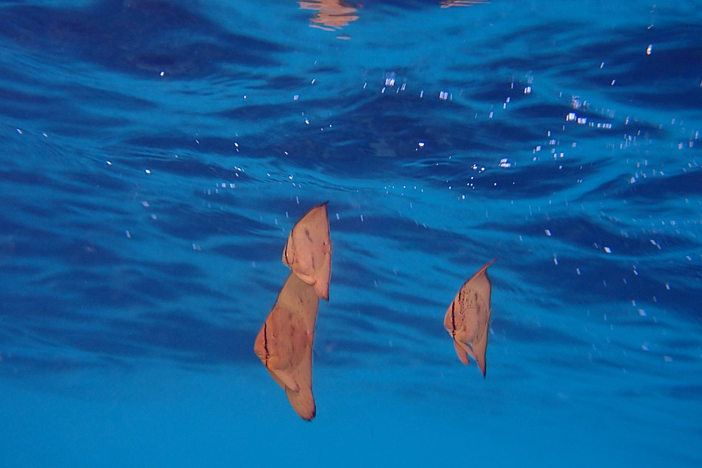 ともに同じナンヨウツバメウオの幼魚なのに双方、対照的な場所で見られました(^o^)/