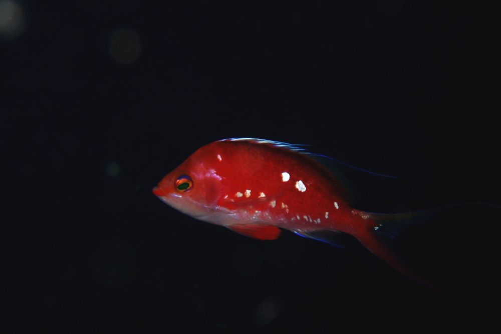 他にも岩陰にサザナミヤッコ幼魚やタテジマキンチャクダイ幼魚、ソメワケヤッコ幼魚などのヤッコ系や可愛いちびっ子ネッタイミノカサゴ幼魚がいたり、ヨスジフエダイの子どもたちは群れていたりと賑やかな海の中です。