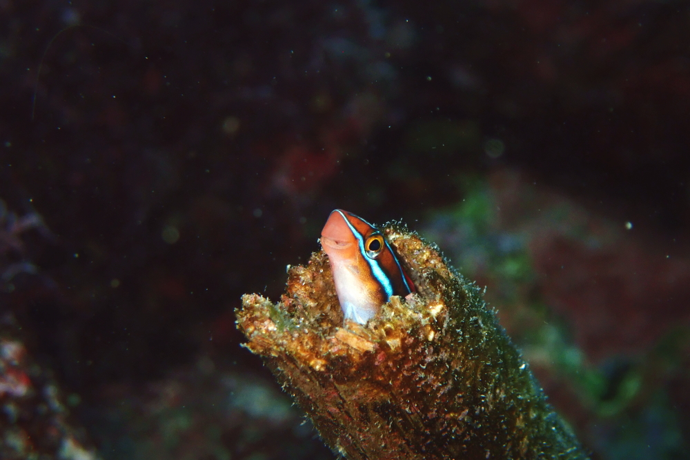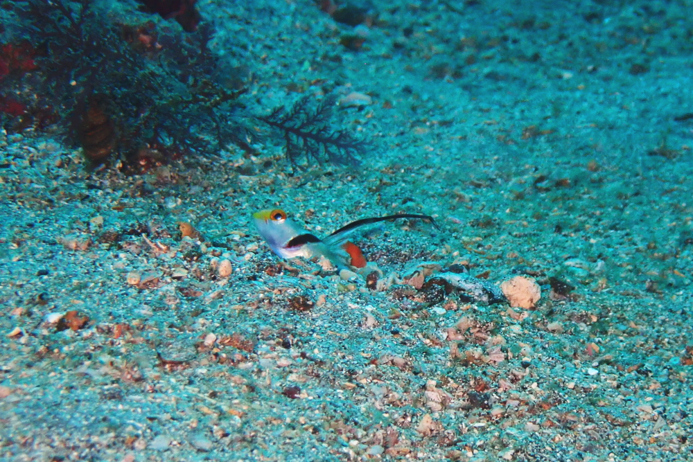 ヒレナガネジリンボウは近くにサツマカサゴがいたからなのか、チョコンと顔だけ出して様子をうかがってる感じでした。