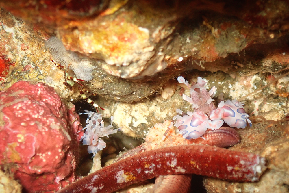 クマドリカエルアンコウ、フリソデエビ、フトスジイレズミハゼ、オルトマンワラエビ、ソメワケヤッコ、セスジスミゾメミノウミウシ、アライソコケギンポ、