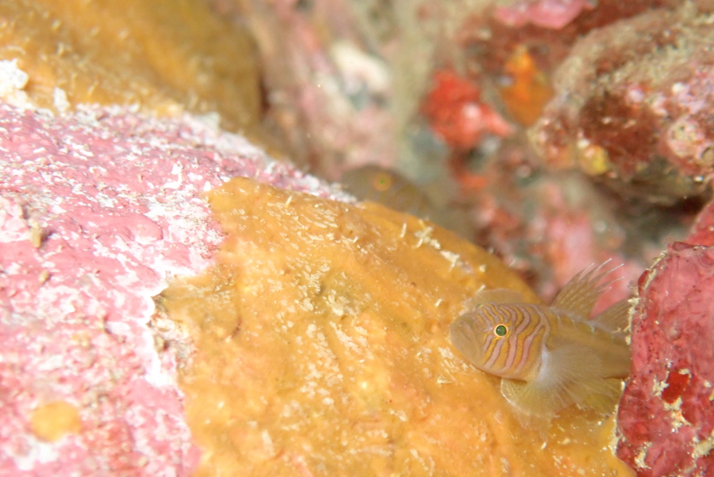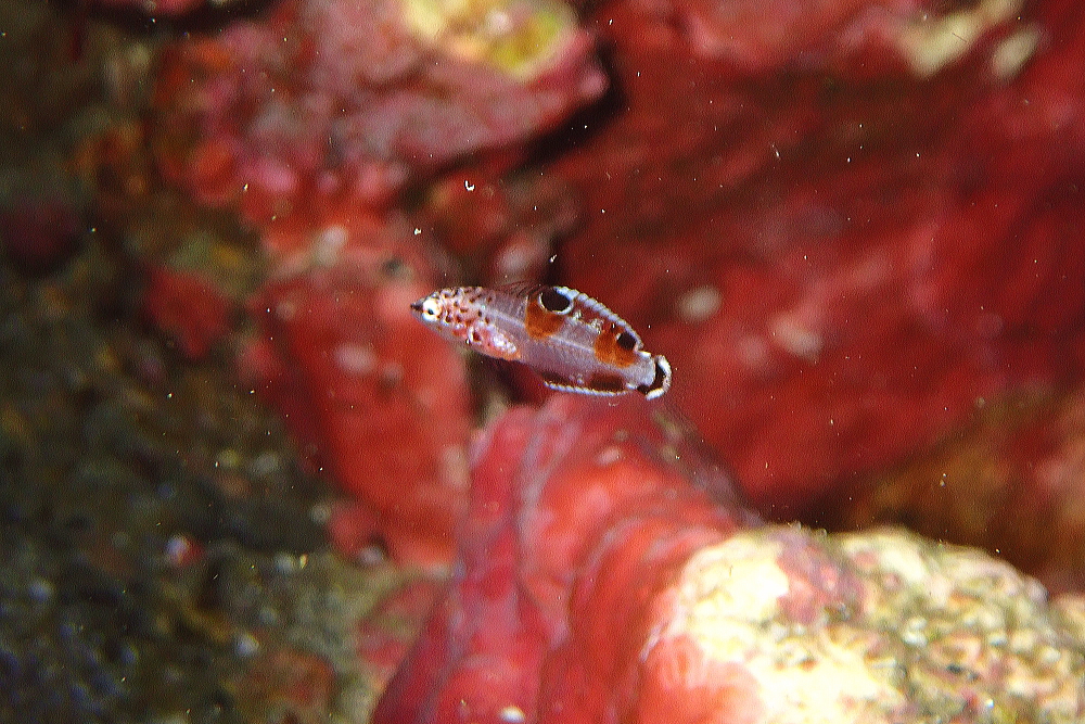 オオバンカイメンにはアカスジウミタケハゼやヘビギンポの赤ちゃん等が見れていますが、今日はタテジマヘビギンポ見っけ👀