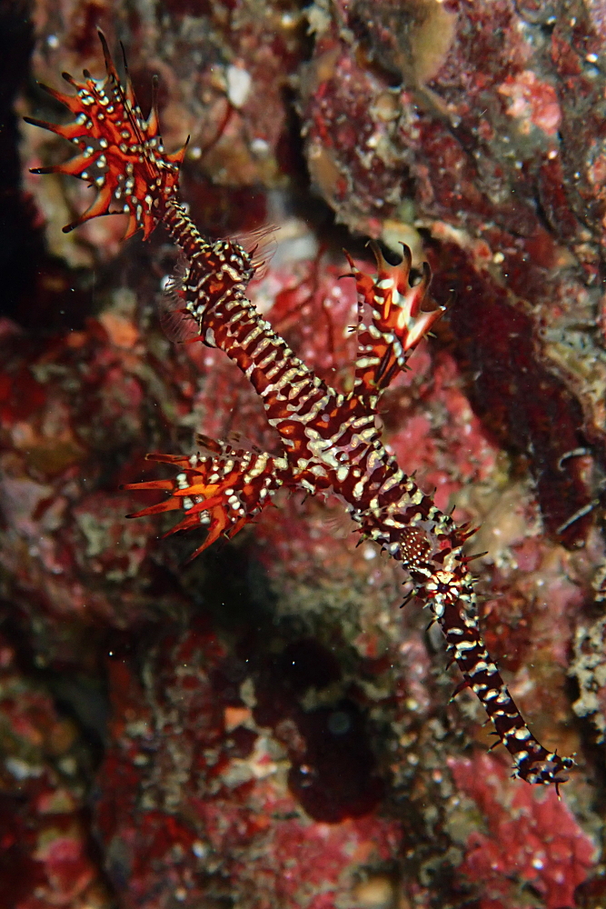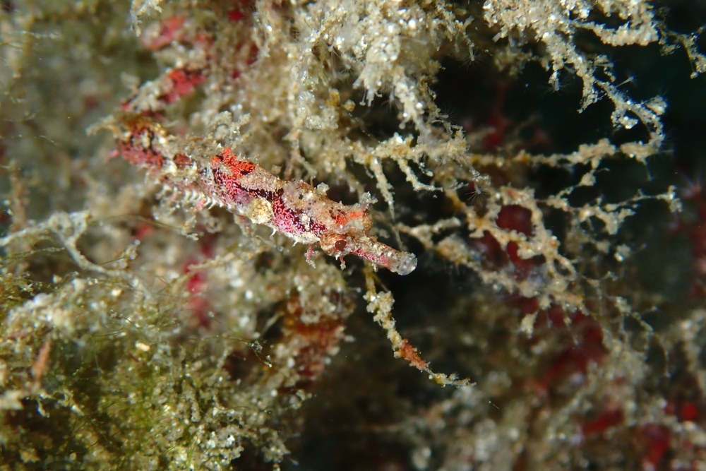 水深10~13m付近でも見やすいサイズのヒレナガネジリンボウもいるので、初心者の方でもわざわざ深場方面に行かなくても見られますよ。