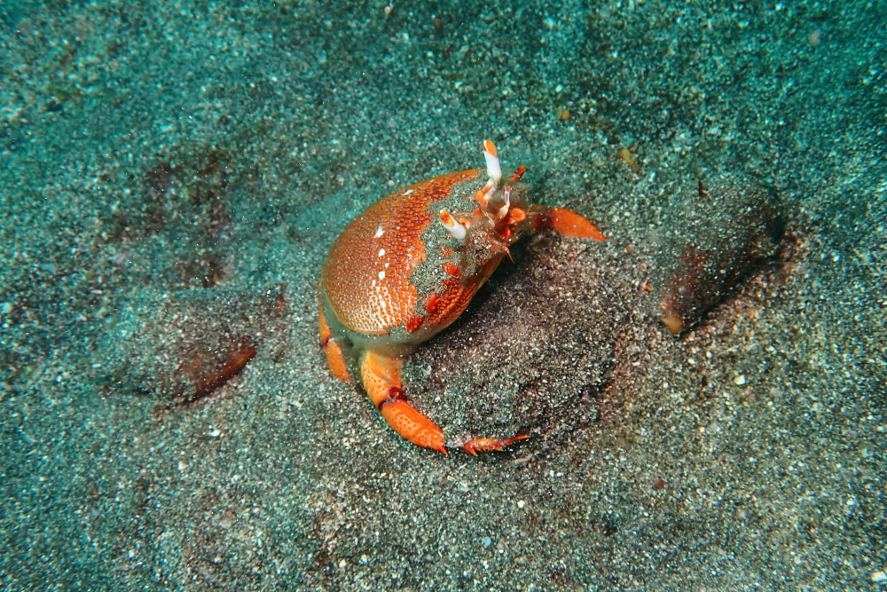 今日はツバクロエイが久しぶりに見られたり、定番のアサヒガニやセトミノカサゴ、ロータスミノウミウシなどが見られました(^^)