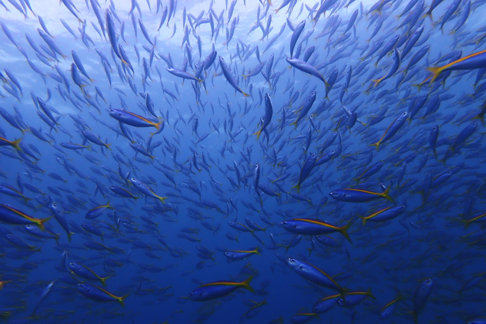 テトラポッド周辺ではタカベの群れが玉になって登場!