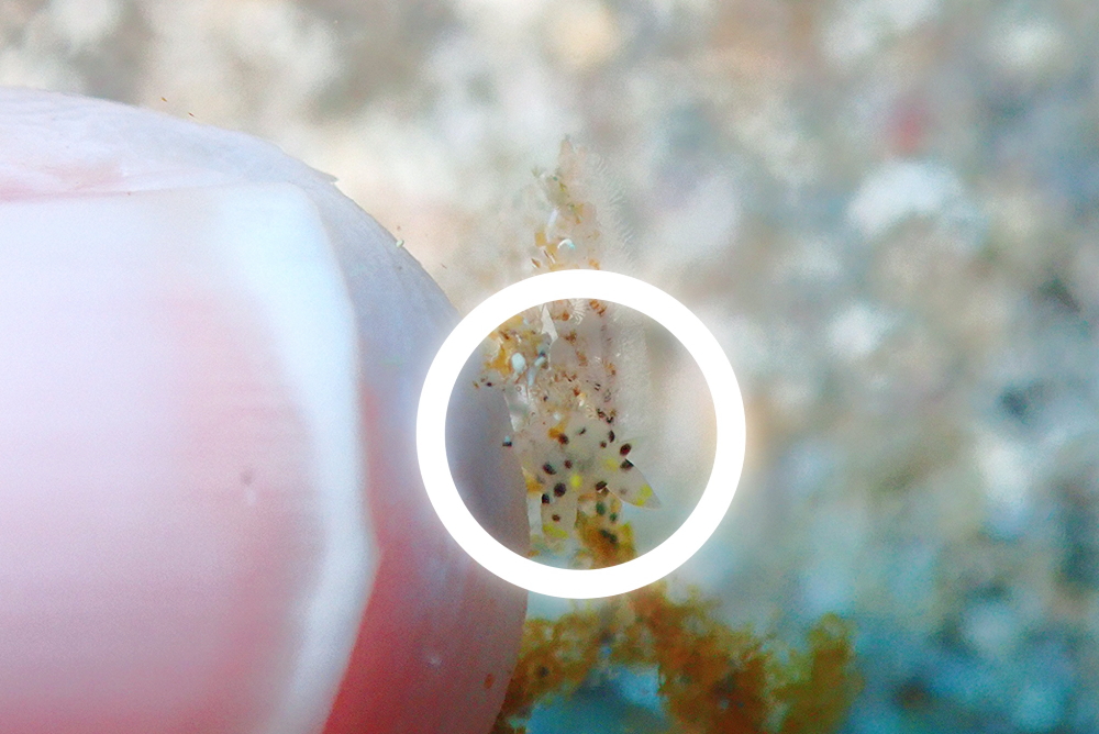 サイズは1mm、ツノザヤウミウシやオセミズタマウミウシよりも小さかったですねー