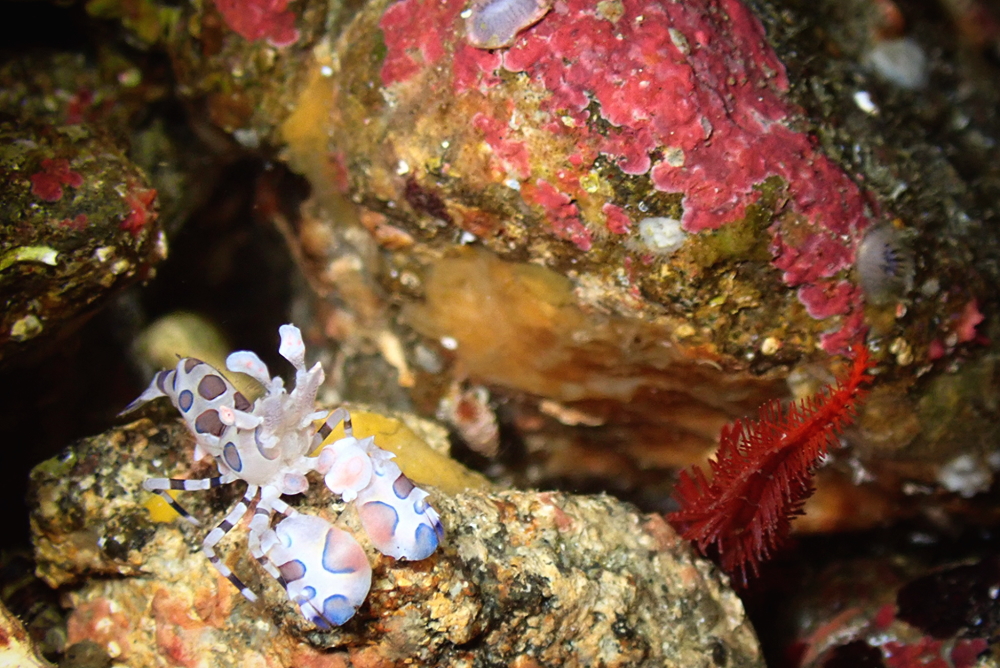 コマチコシオリエビ、キンギョハナダイ群れ、ヒメサンゴガニ、サビハゼ、