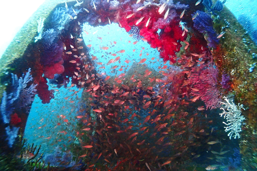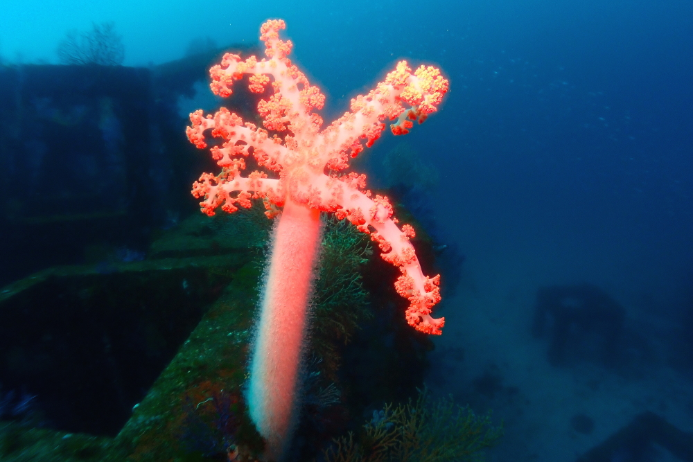 漁礁には魚たちだけではなく大きなソフトコーラルもいっぱい。