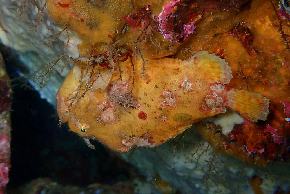 いつも逆さまのベニカエルアンコウ、クマドリカエルアンコウ、イロカエルアンコウのカエルアンコウトリオ。