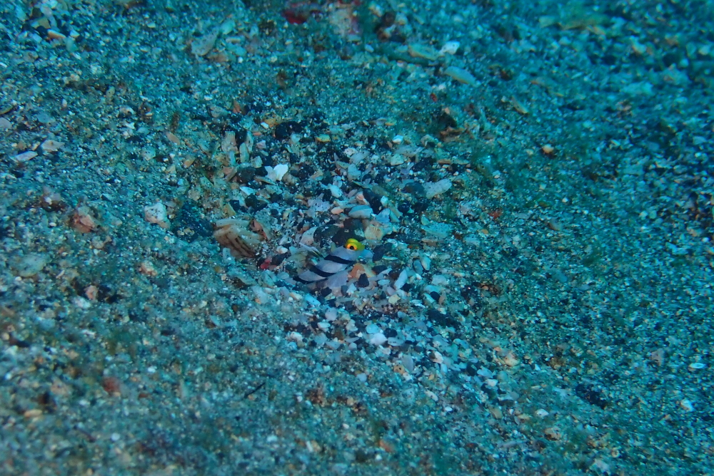 落ちているイワシを見ていると脇でネジリンボウやヒレナガネジリンボウがホバーリング。