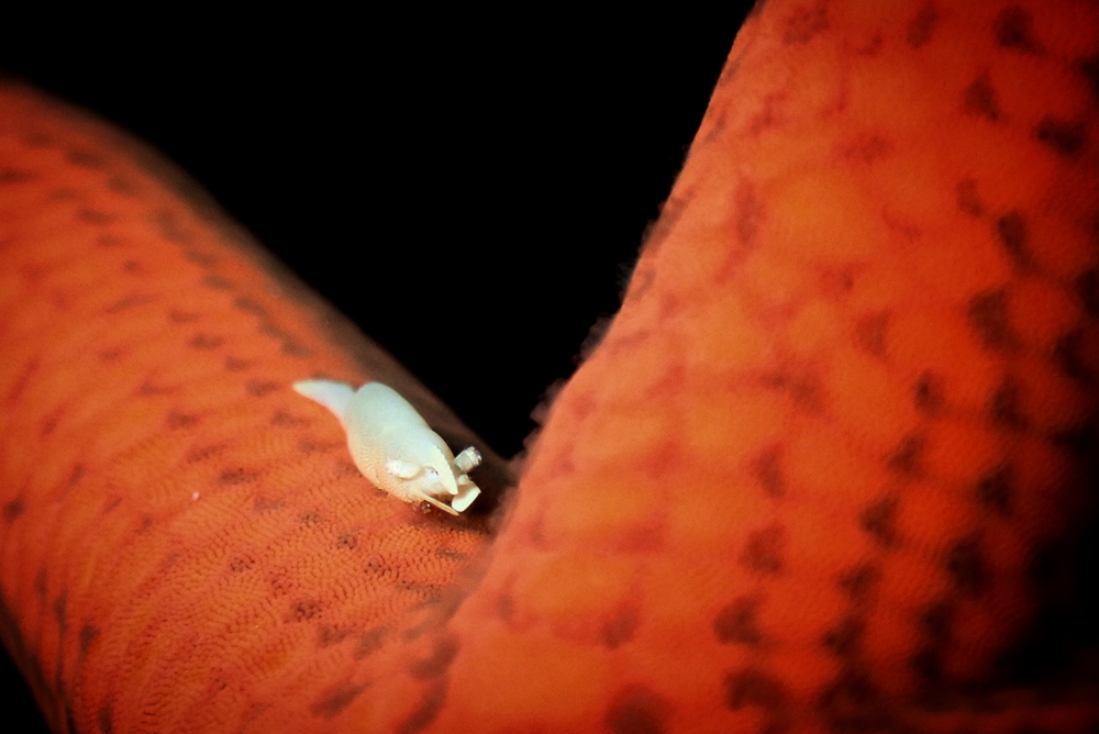 キンチャクダイ幼魚、コマチコシオリエビ、ウミシダカクレエビ、