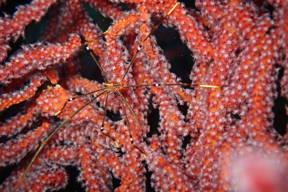 ビシャモンエビ、ミツボシクロスズメダイ幼魚、ウミシダヤドリエビ、