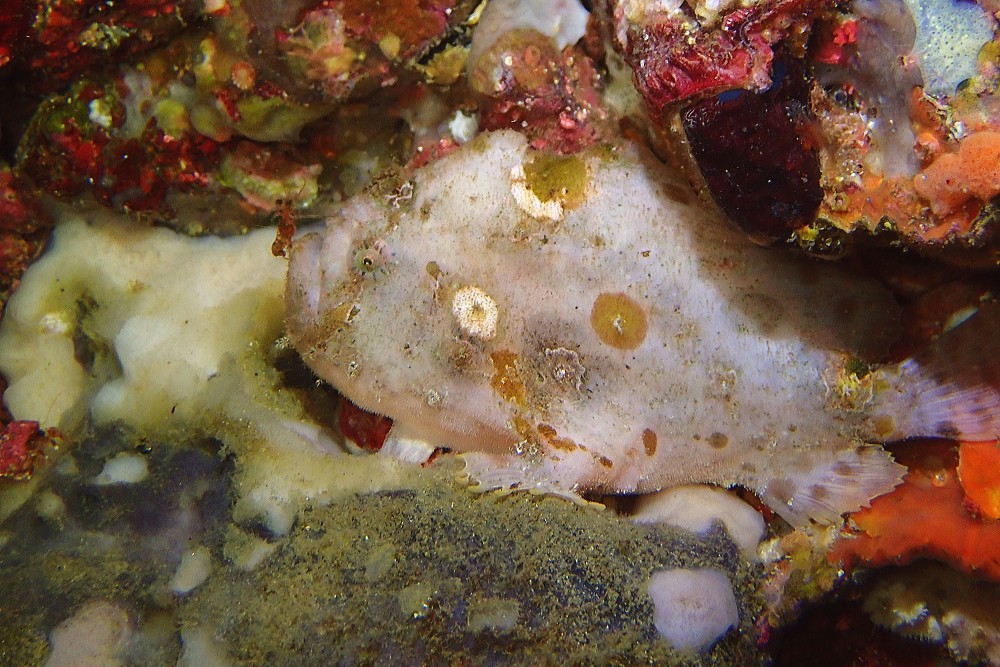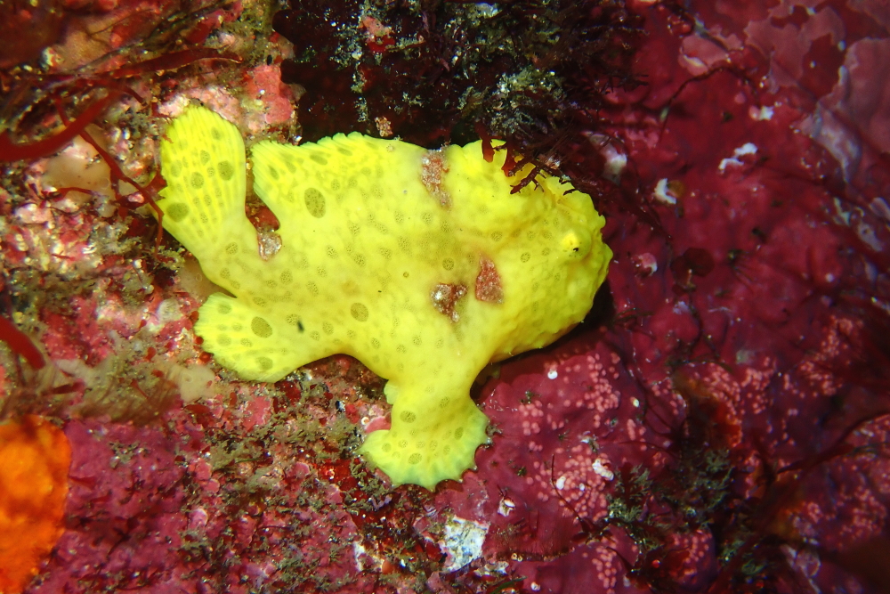 アジ根へ向かう途中では前回より場所が少し変わりましたが、今日も人気生物のイロカエルアンコウに会えました。