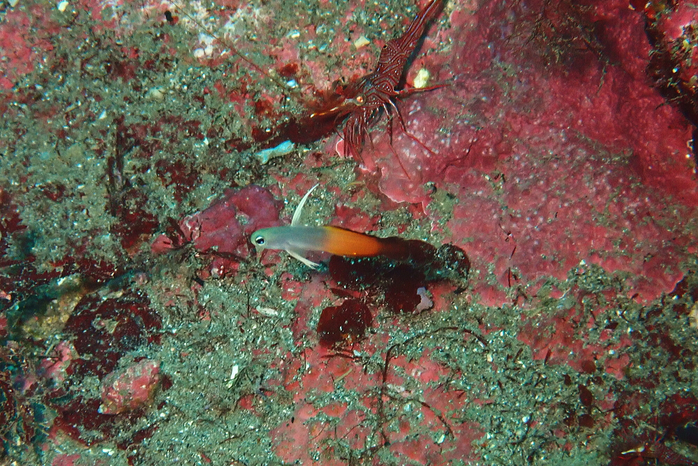 その他にもアジ根周辺では、フリソデエビ、ベンケイハゼ、クリアクリーナーシュリンプ、コミドリリュウグウウミウシ、コイボウミウシ、キンギョハナダイ、ルリハタ、オオメハゼ、アカスジウミタケハゼ、アカホシカクレエビ等々が見れています。