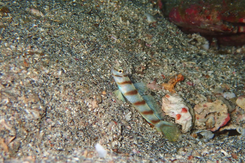 ヒレナガネジリンボウやヤシャハゼなど人気生物も見れていますが、ちょい地味ですがハチマキダテハゼもなかなか珍しいですよ~。