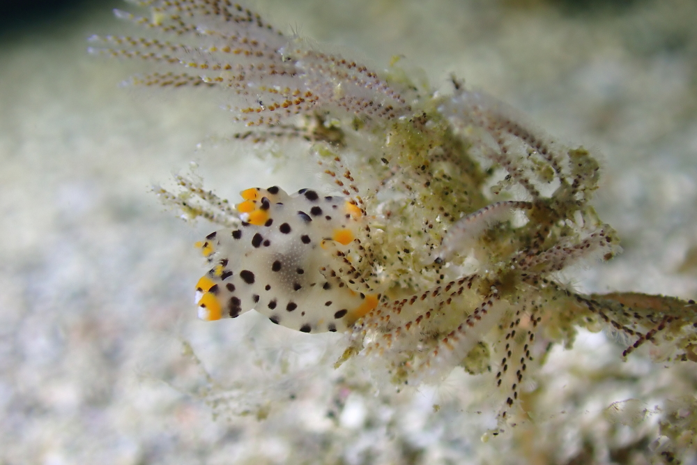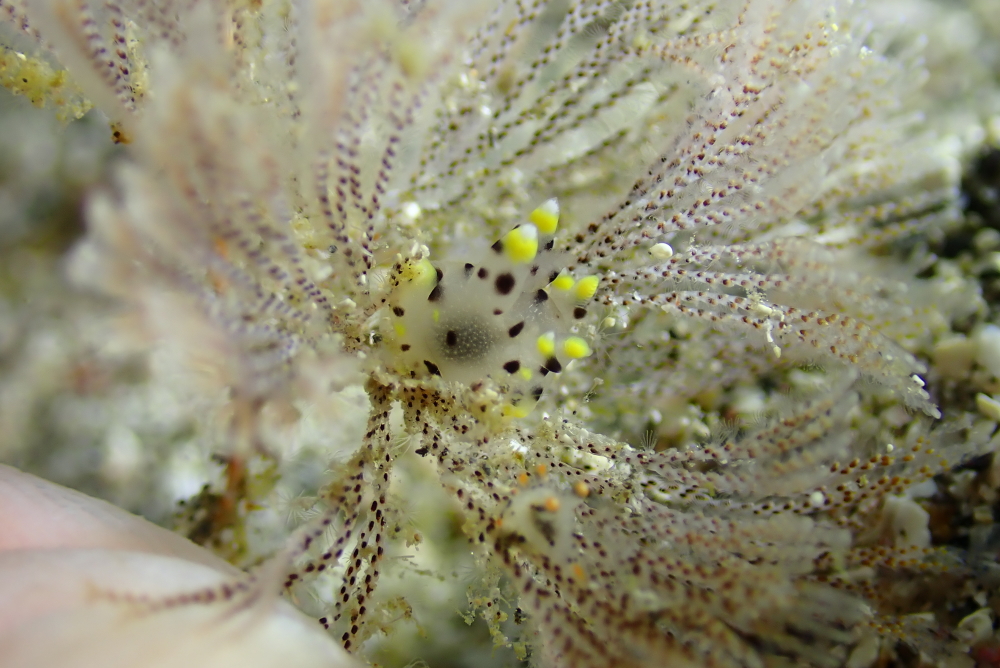後輩ガイドくんから情報もらって見てきたツノザヤウミウシ。