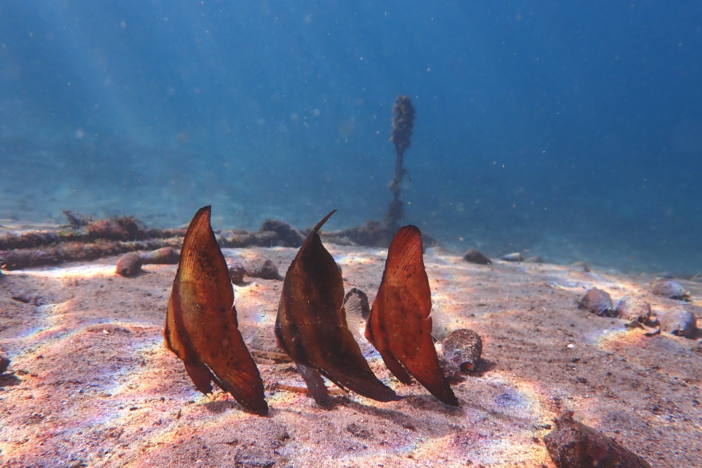 港内では2匹だったナンヨウツバメウオの幼魚が3匹に増えてました(^^;