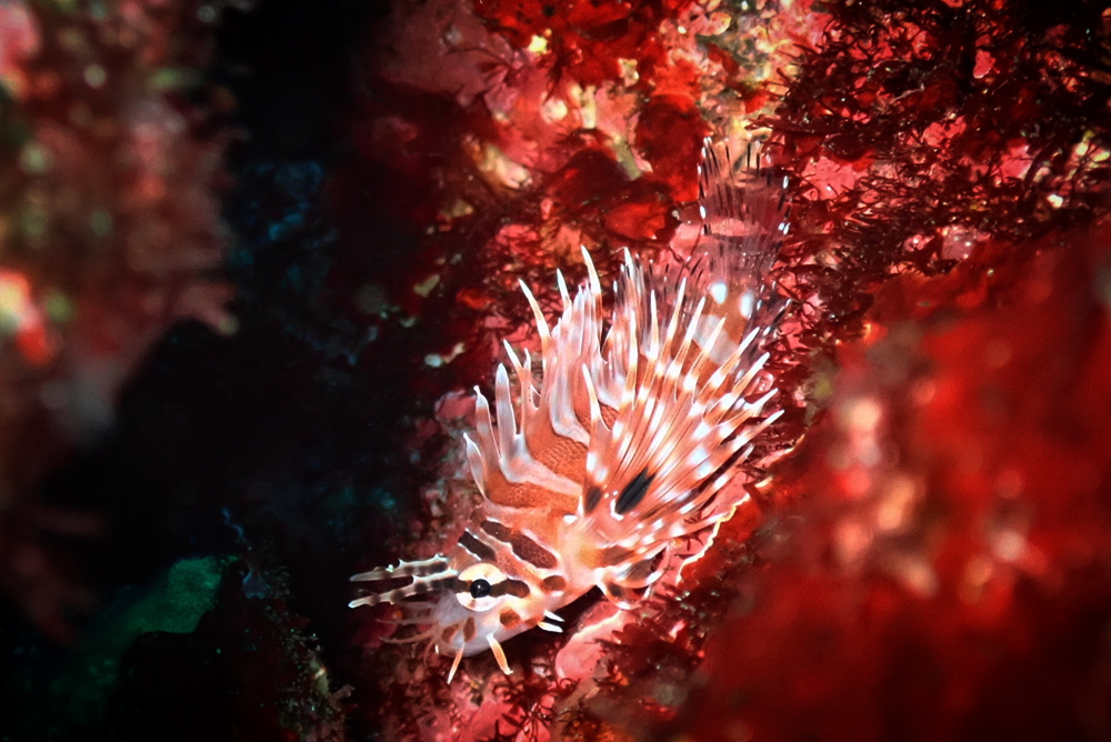 ロータスミノウミウシ、ムチカラマツエビ、アミメハギ、アオウミウシ、
