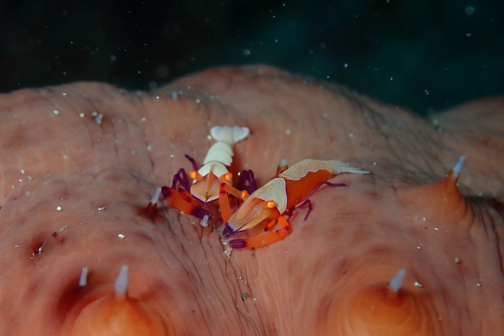 甲殻類もおもしろくて、ウミウシカクレエビのペア・フリソデエビ・アカシマシラヒゲエビ・イソギンチャクエビ。