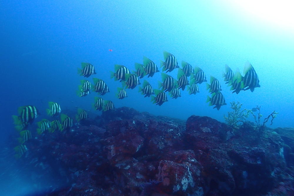 根の先端まで行くとキンギョハナダイがわんさか群れているんだけど、ダイバー慣れしていないので、めっちゃ速く泳ぎます(^o^;