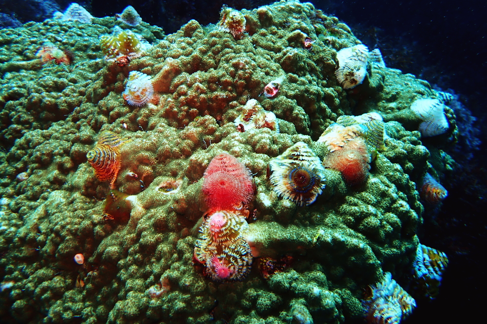 カリフラワーのようなソフトコーラルが群生していて、スズメダイやシラコダイの群れもたくさん見れました。