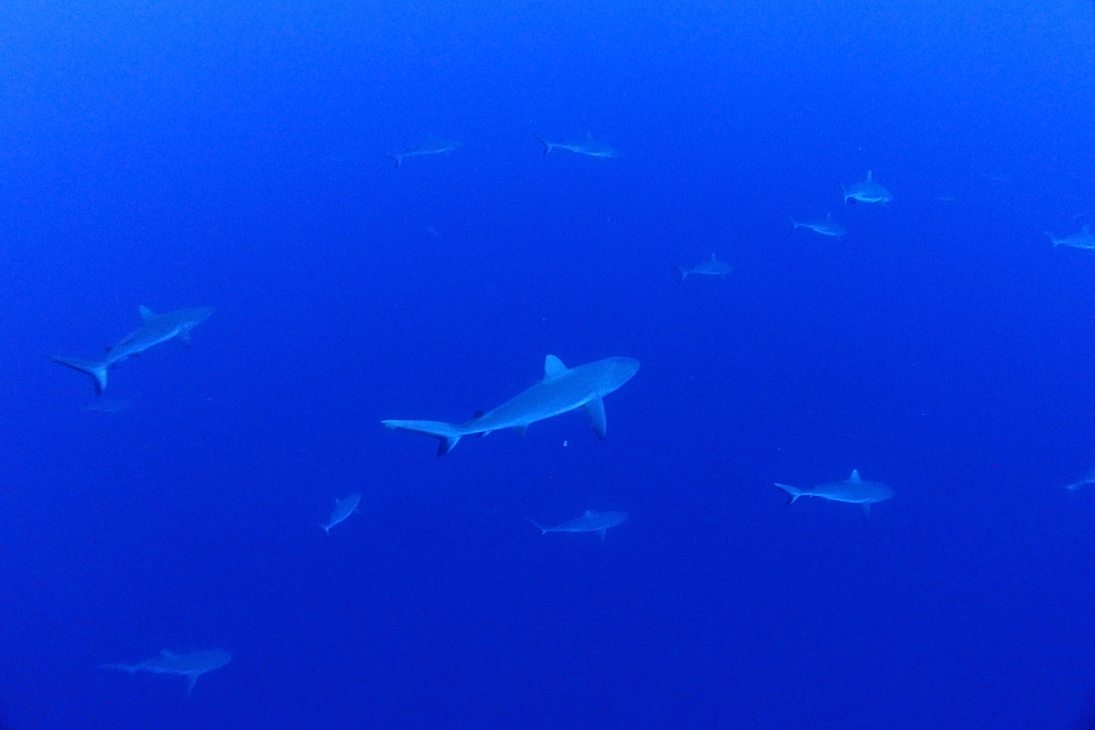 見渡せばウヨウヨとサメがあちこちに。