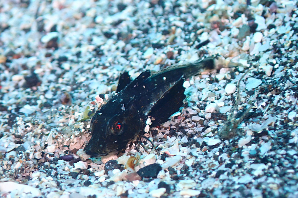 低気圧の影響でうねりが続いている中で1cmくらいのホウボウの赤ちゃんたちはずっと居てくれている…