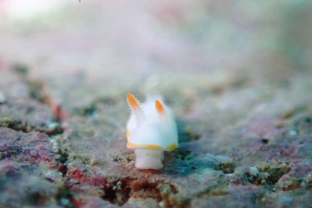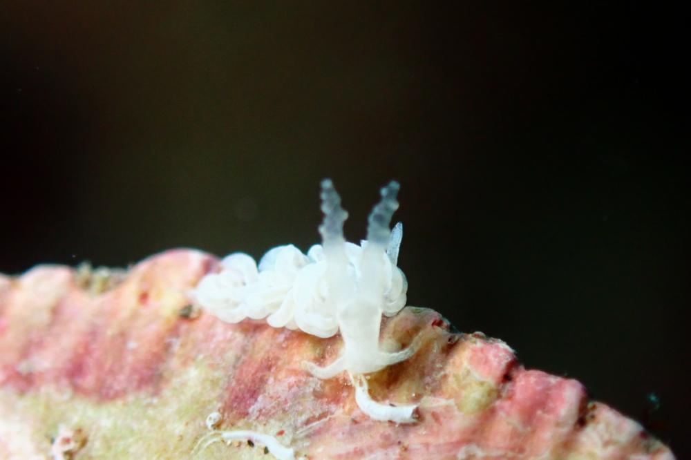真っ白な体のツノワミノウミウシ!
